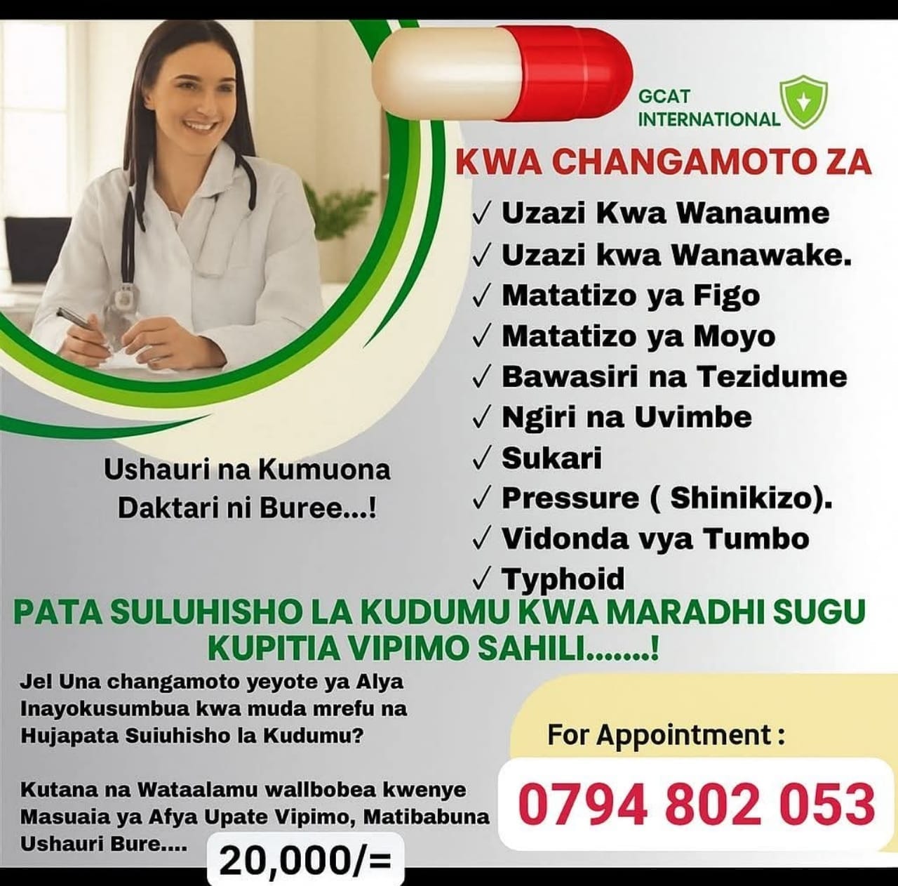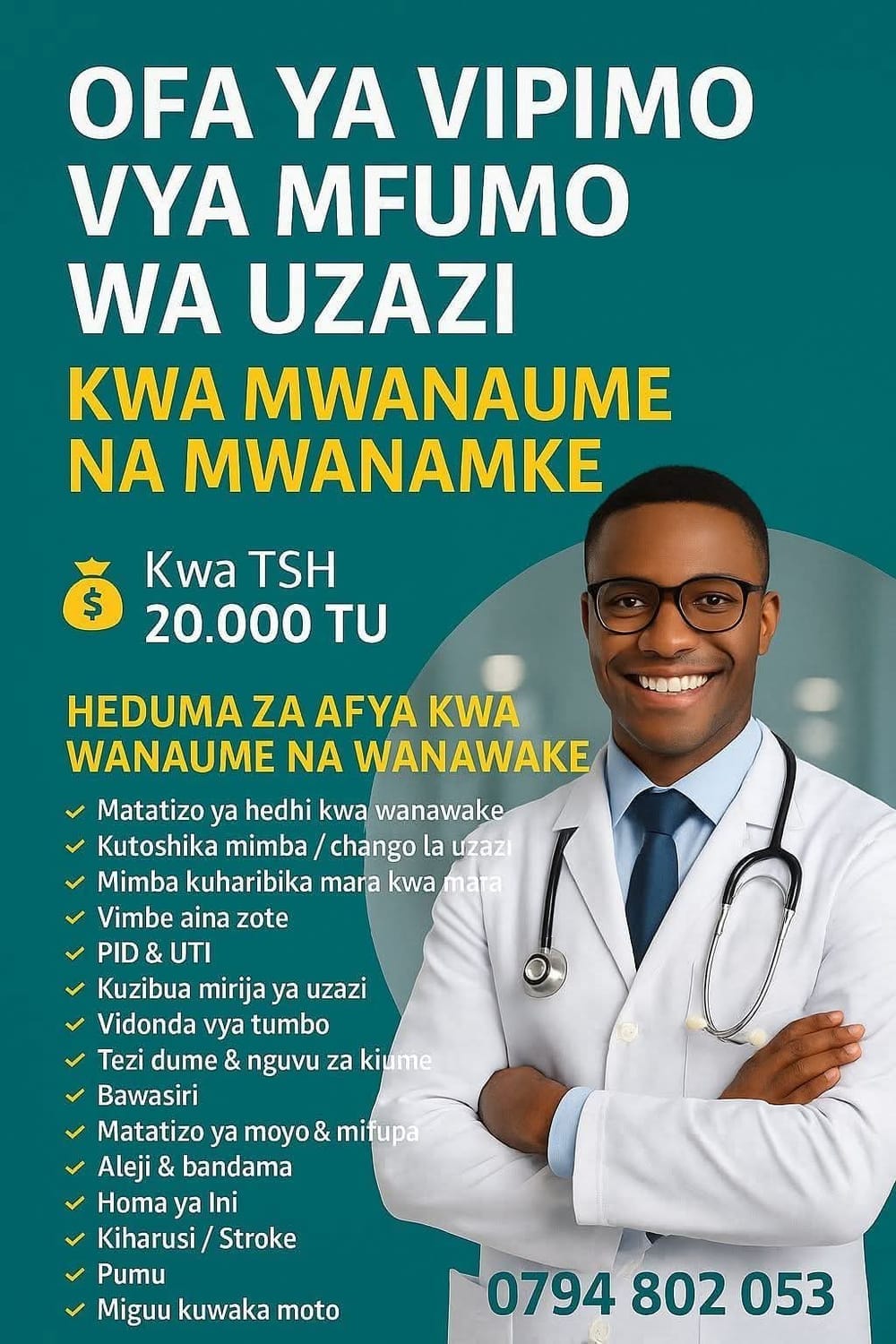 FANYA MAAMUZI LEO PIMA AFYA YAKO LEO UBAKI SALAMA,BAADA YA VIPIMO TUNATOA USHAURI NA TIBA SAHIHI KWA CHANGAMOTO YAKO
